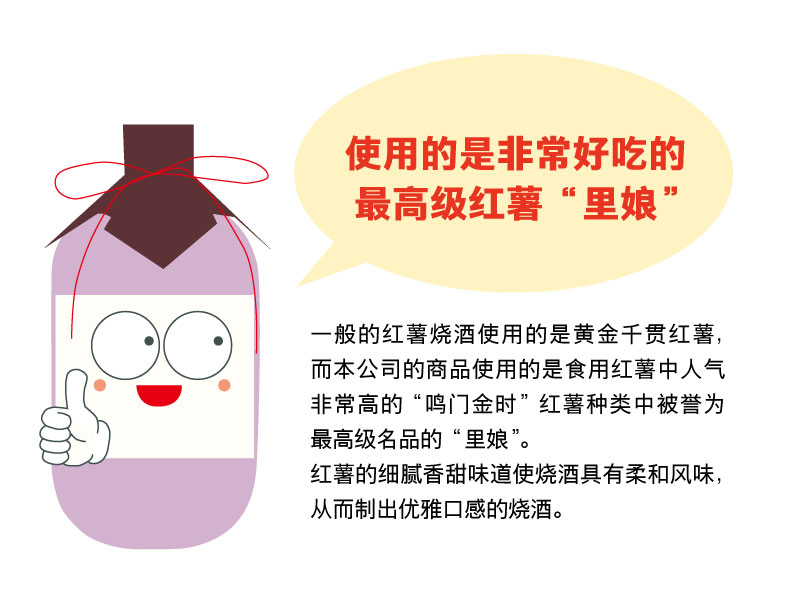 淡淡的甜味,给人轻松的感觉的正宗红薯烧酒。