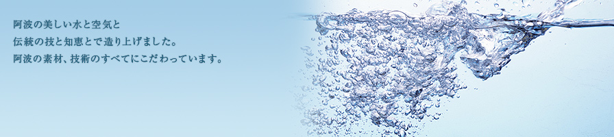 徳島産阿波山田錦は地元阿波の里の山麓の日当たりと風通しの良い選ばれた土壌で作られ、心白がはっきりしていて、酒の雑味となるタンパク含量が少ないもっとも酒造りに適した酒米です。品質管理の徹底と施肥の工夫で全国的に注目されている阿波山田錦は地域ブランド認定もされています。